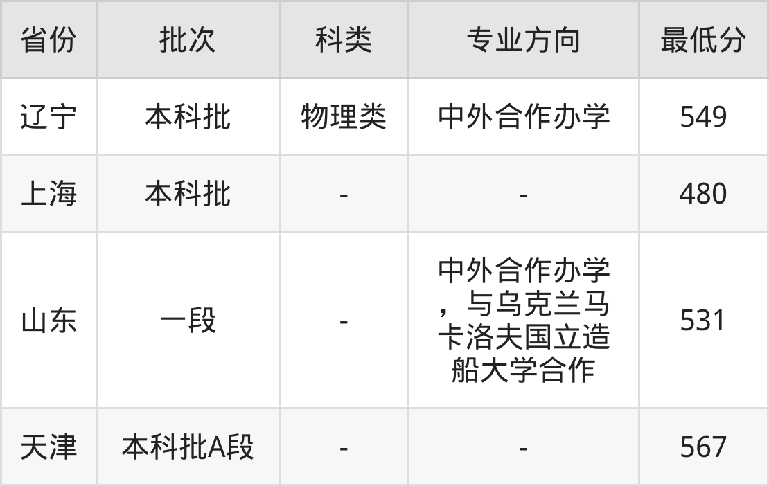 2024年江苏科技大学船舶与海洋工程专业在省外招生分数线各不相同,具体如下: