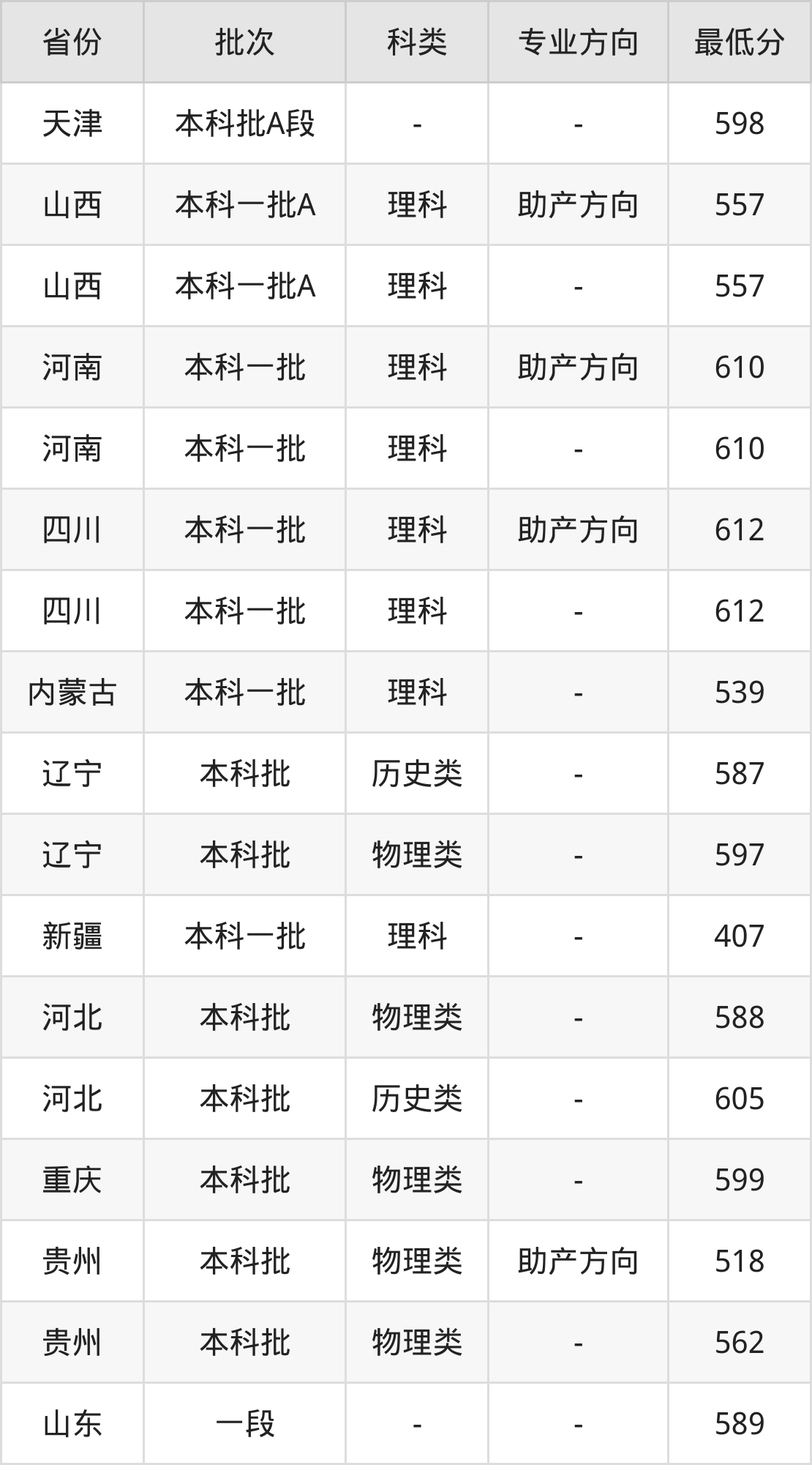| 批次 | 最低分 | 位次 |