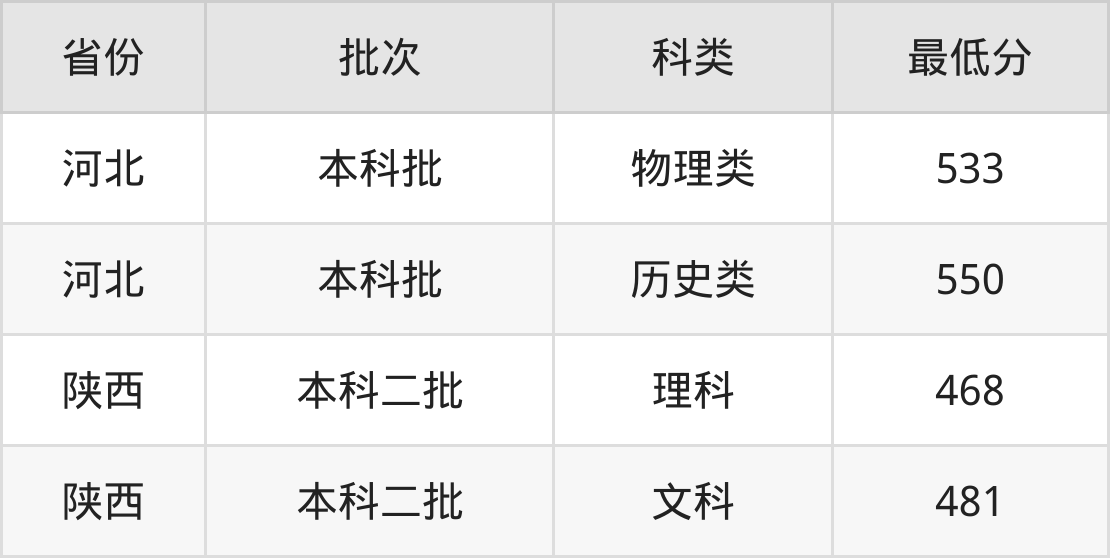 | 批次 | 科类 | 最低分 | 位次 |