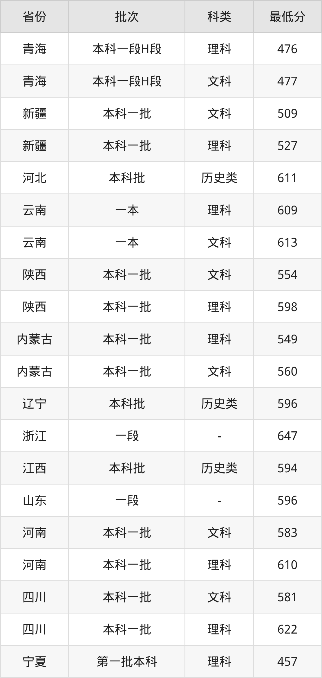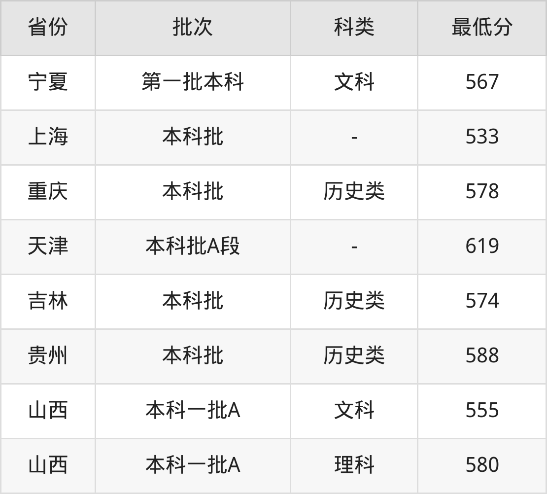 文科583分(位次4196名),理科610分(位次17519名);