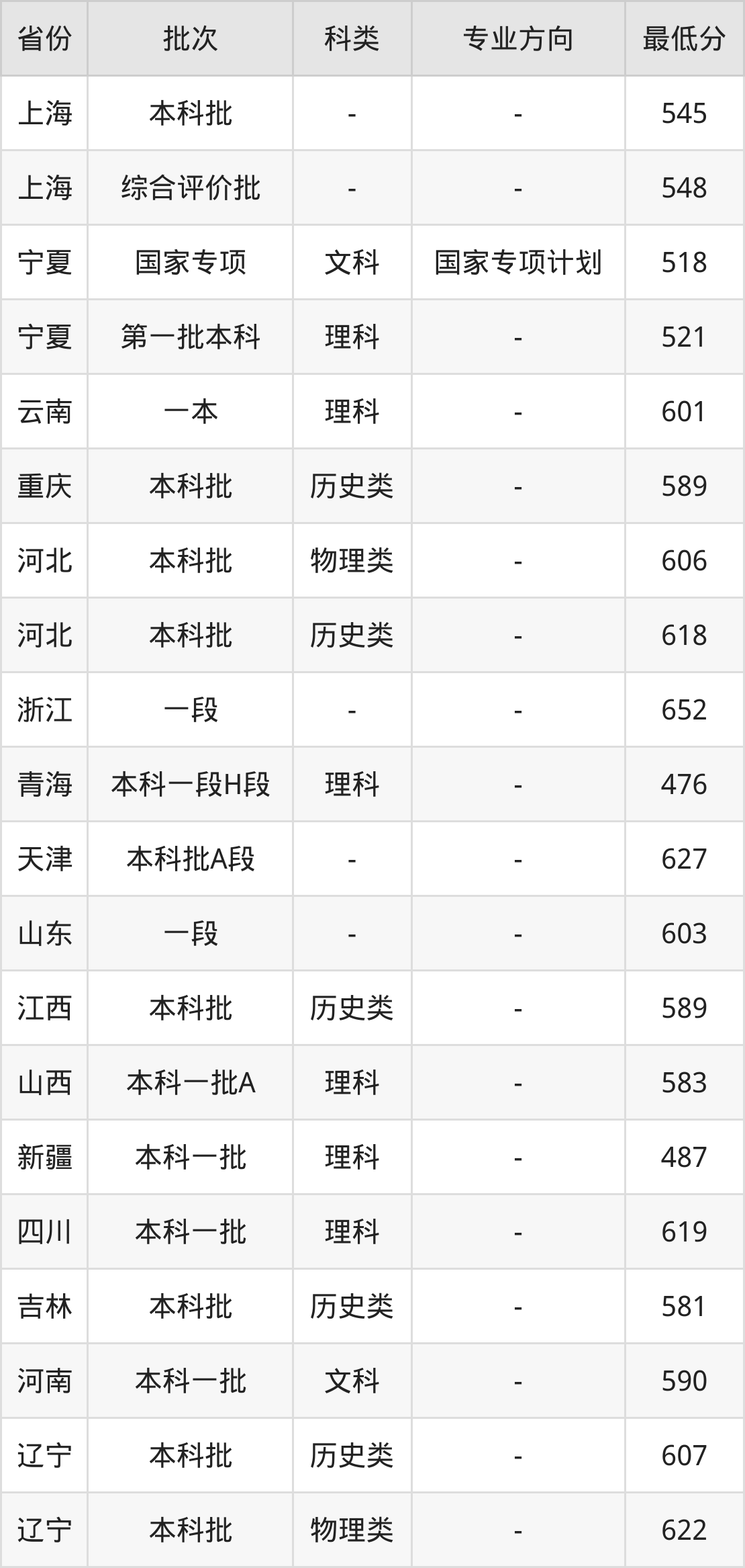 2024年东华大学经济管理试验班专业在市外招生分数线各不相同,具体如下:
