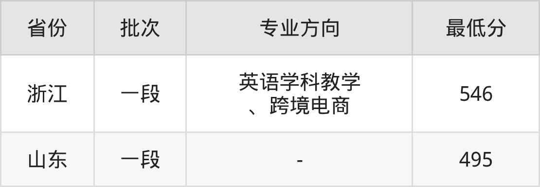 武汉工商学院英语专业录取分数线2025各省汇总显示,省外招生最低分为浙江546分、山东495分。更多专业分数详情、选科要求、专业简介等均可在正文查阅。