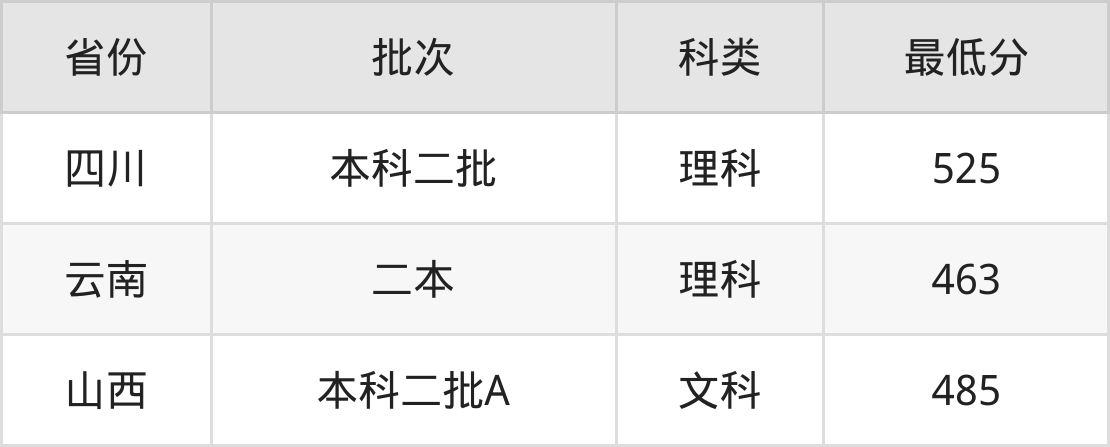 | 批次 | 科类 | 最低分 | 位次 |