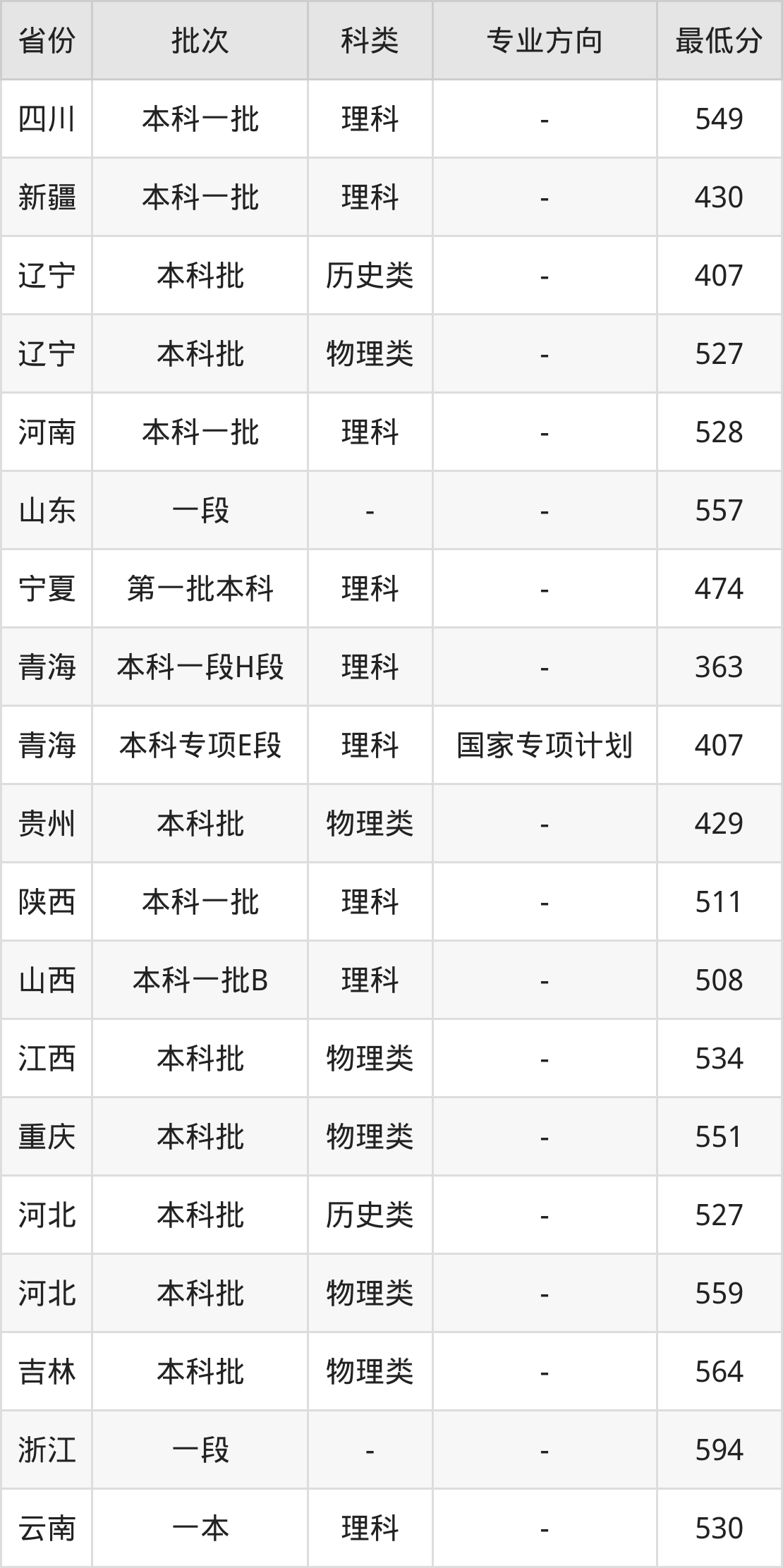 | 批次 | 科类 | 最低分 | 位次 |