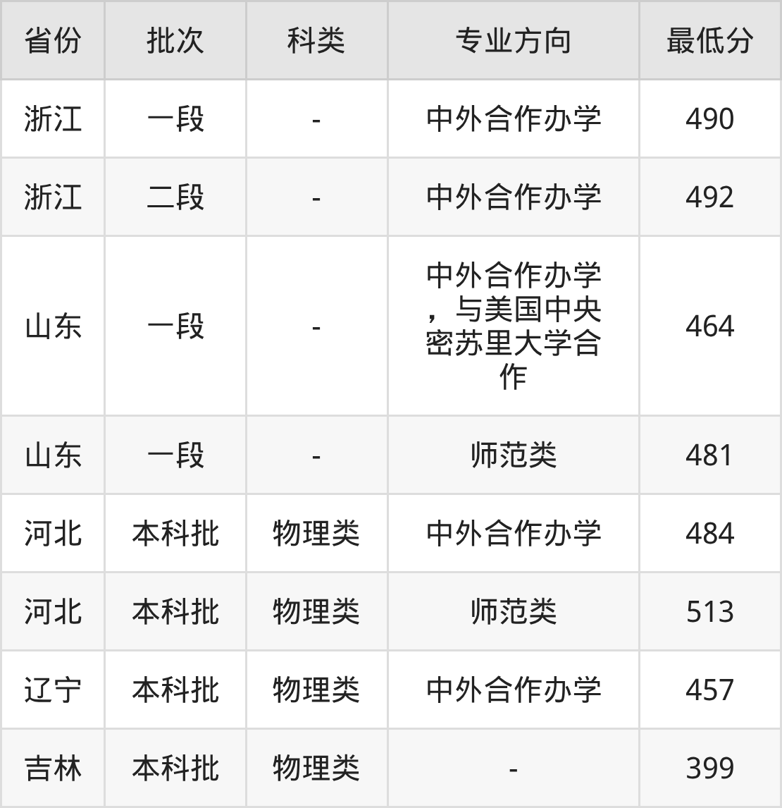 | 本科批 | 物理类 | 中外合作办学 | 484 | 186805 |