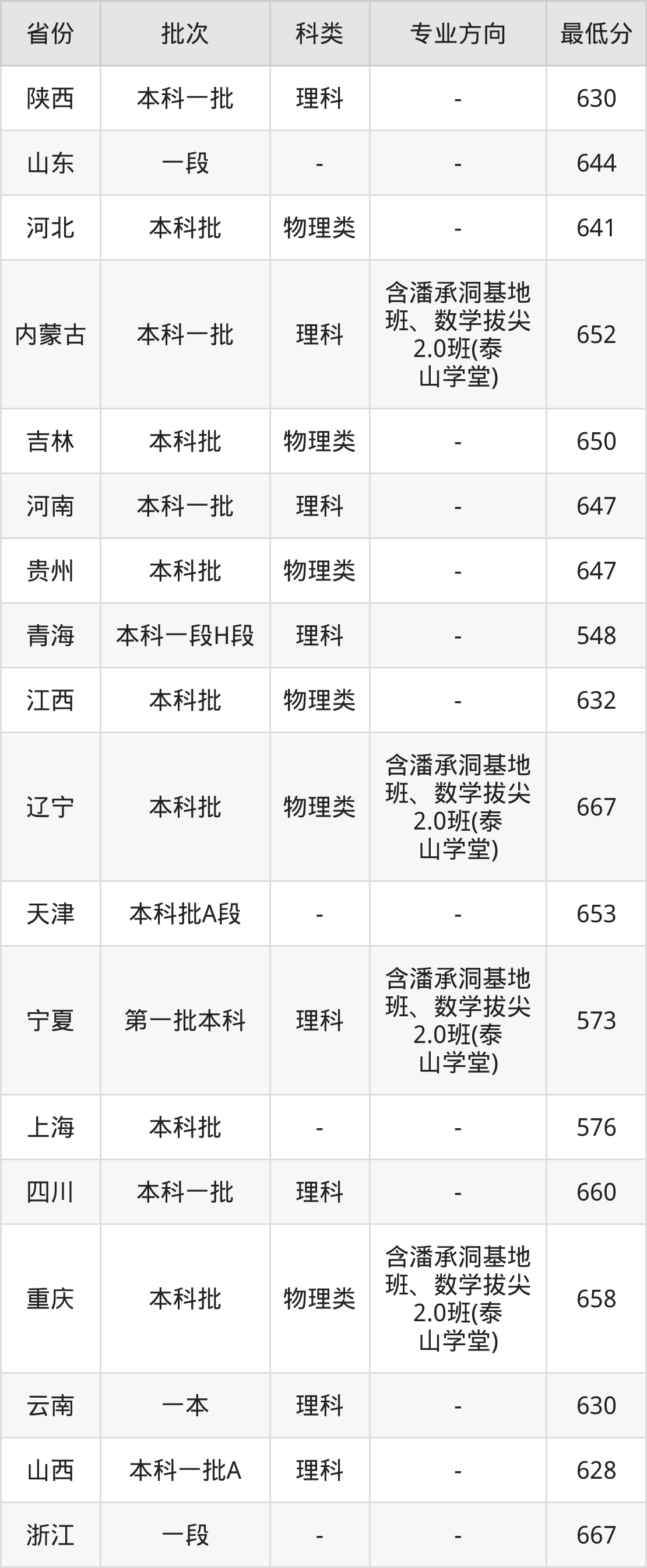 理科652分(含潘承洞基地班、数学拔尖2.0班(泰山学堂)、位次743名);