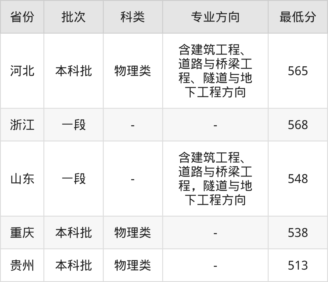 物理类565分(含建筑工程、道路与桥梁工程、隧道与地下工程方向、位次61528名);