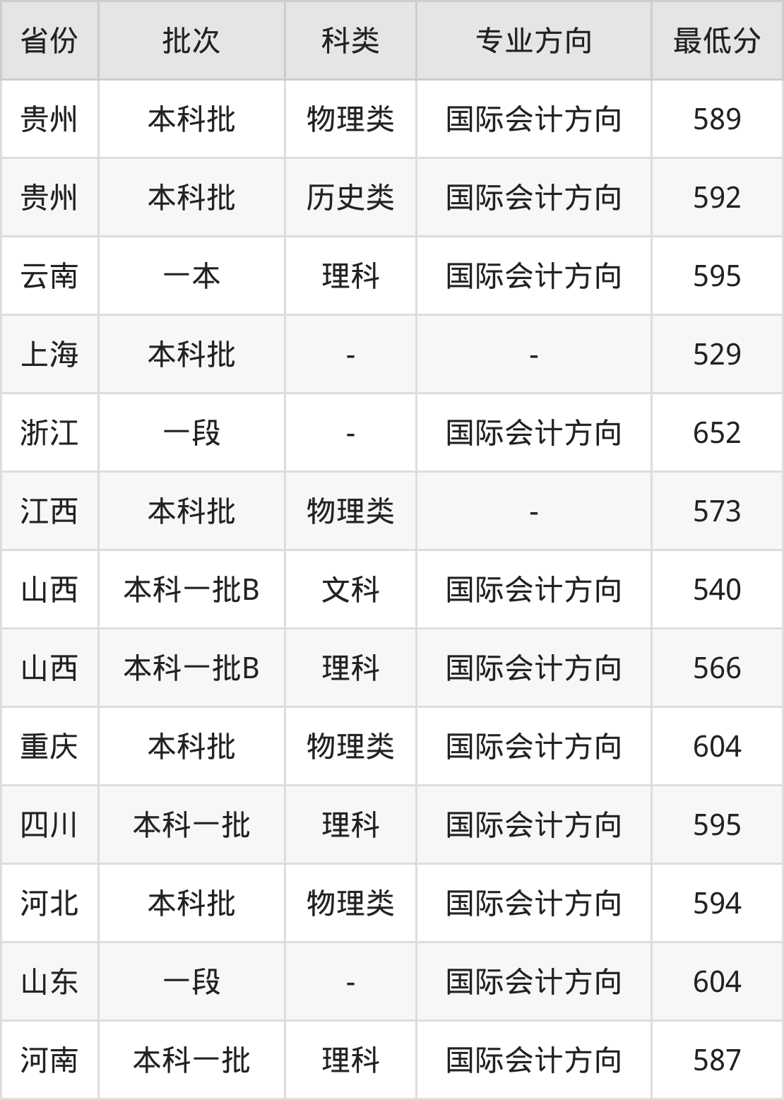 文科540分(国际会计方向、位次4383名),理科566分(国际会计方向、位次17400名);