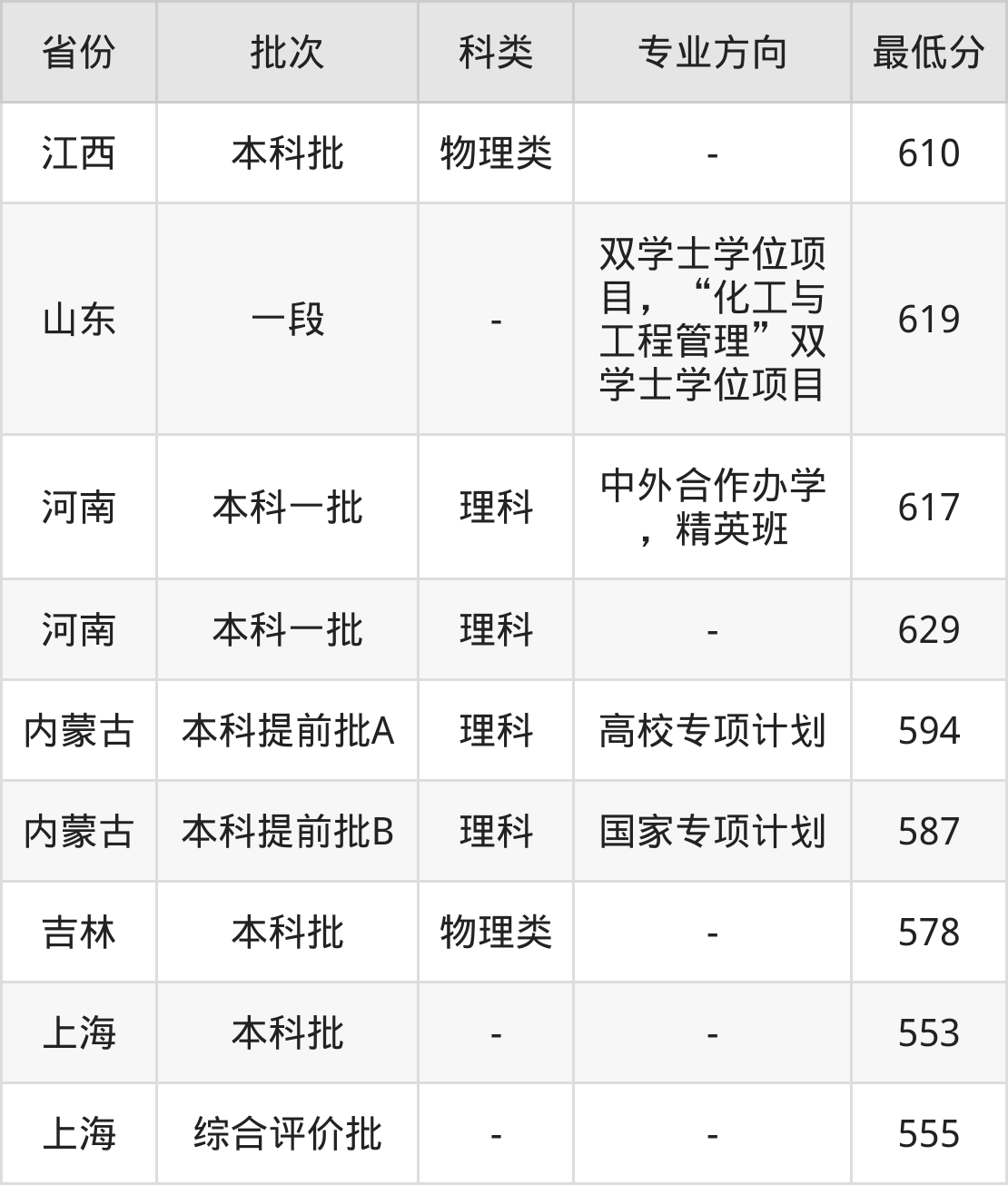 619分(双学士学位项目,“化工与工程管理”双学士学位项目、位次12088名);