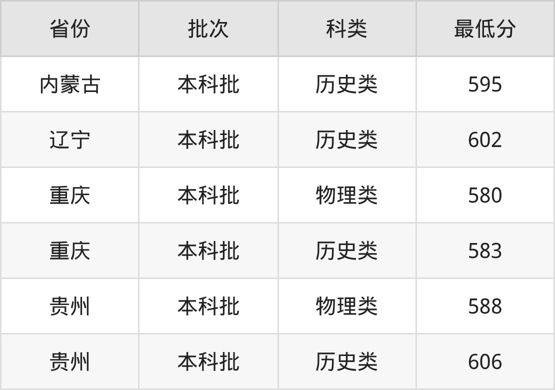 | 批次 | 科类 | 最低分 | 位次 |