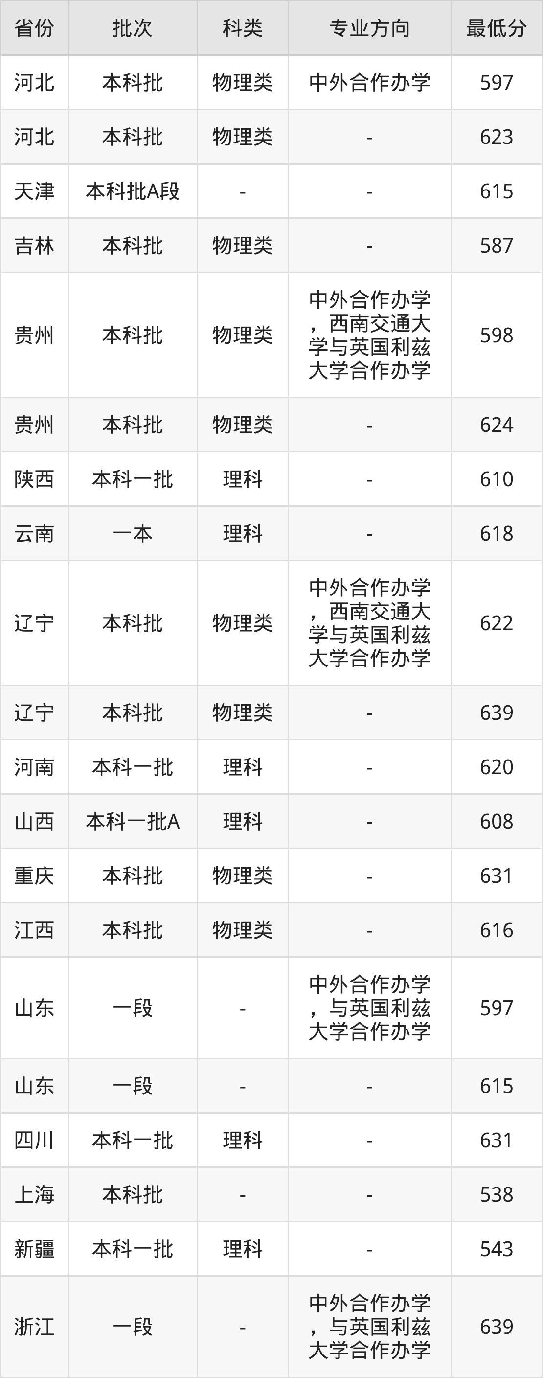 物理类622分(中外合作办学,西南交通大学与英国利兹大学合作办学、位次8928名),物理类639分(位次5454名);