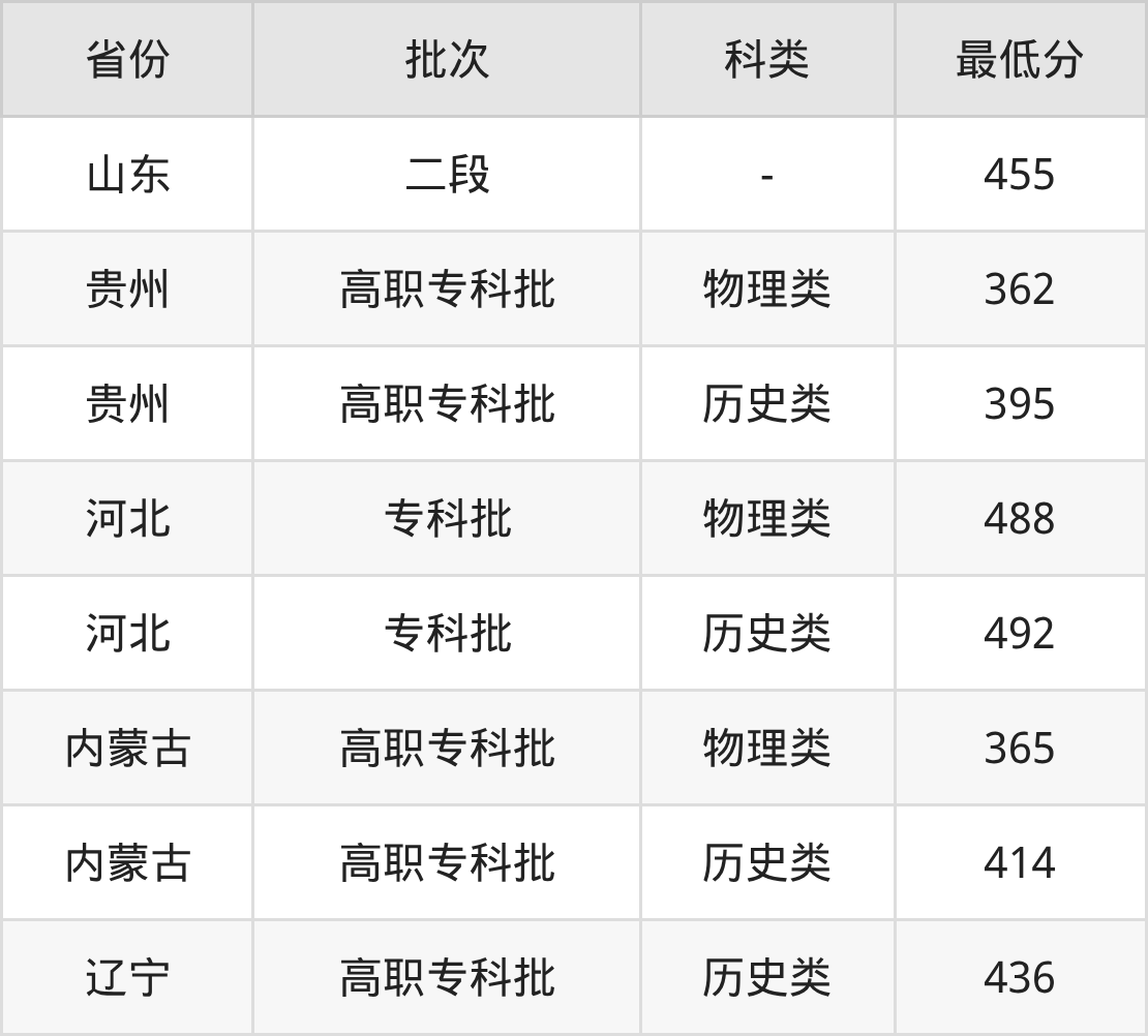 天津现代职业技术学院大数据技术专业录取分数线2025各省汇总显示,市外招生最低分为贵州362分、河北488分、内蒙古365分、辽宁436分等。更多专业分数详情、选科要求、专业简介等均可在正文查阅。
