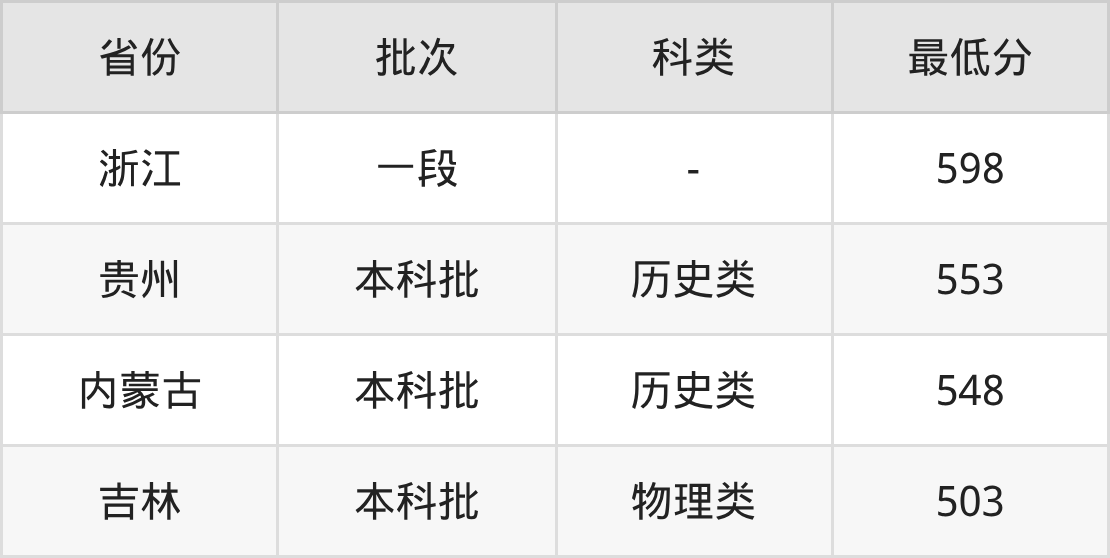 上海应用技术大学英语专业录取分数线2025各省汇总显示,市外招生最低分为内蒙古548分、吉林503分、浙江598分、贵州553分。更多专业分数详情、选科要求、专业简介等均可在正文查阅。