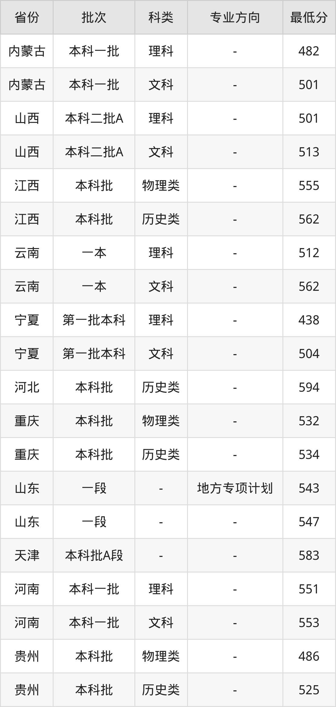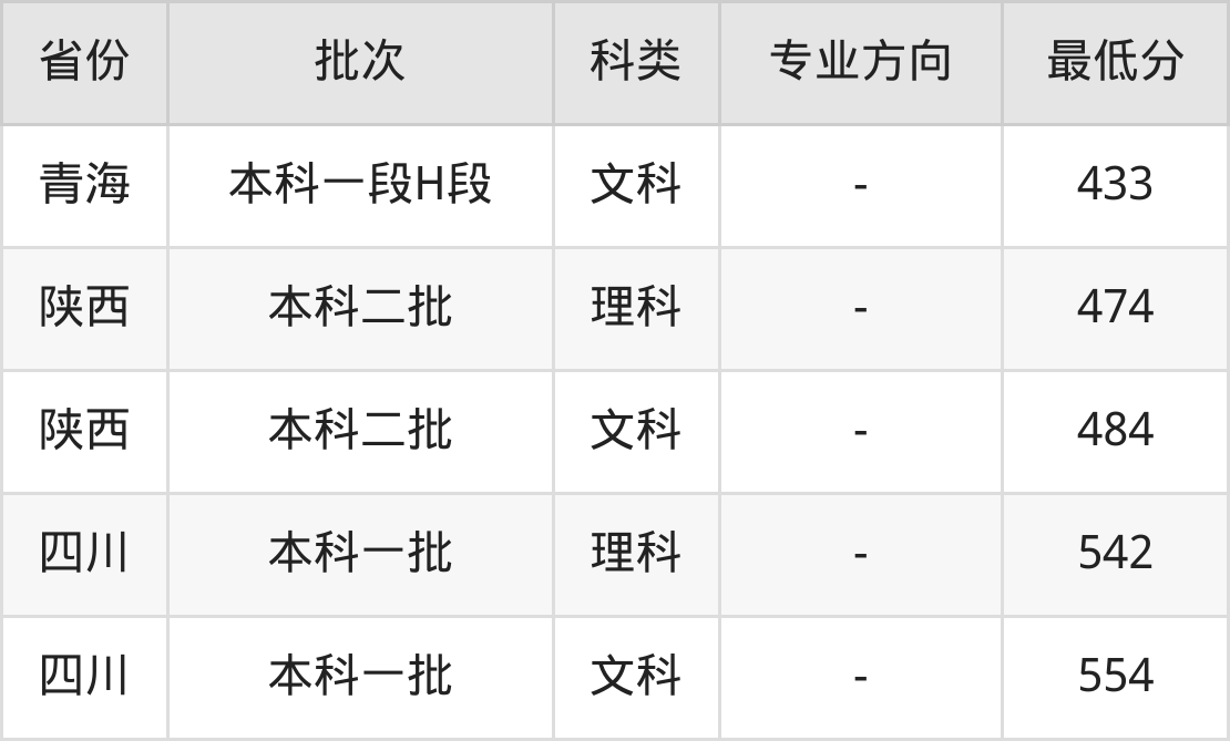 | 批次 | 专业方向 | 最低分 | 位次 |