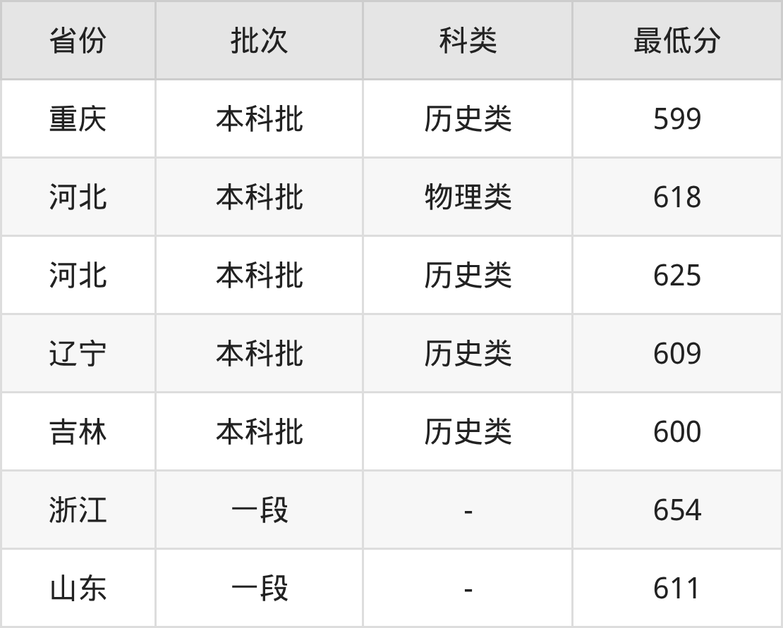 | 批次 | 最低分 | 位次 |