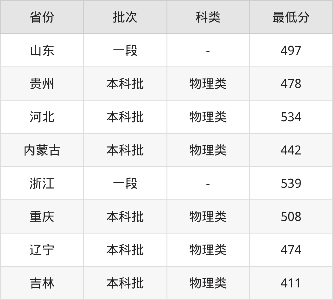 江西理工大学土木工程专业录取分数线2025各省汇总显示,省外招生最低分为辽宁474分、吉林411分、浙江539分、山东497分等。更多专业分数详情、选科要求、专业简介等均可在正文查阅。