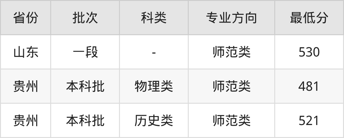 物理类481分(师范类、位次67056名),历史类521分(师范类、位次14877名)。