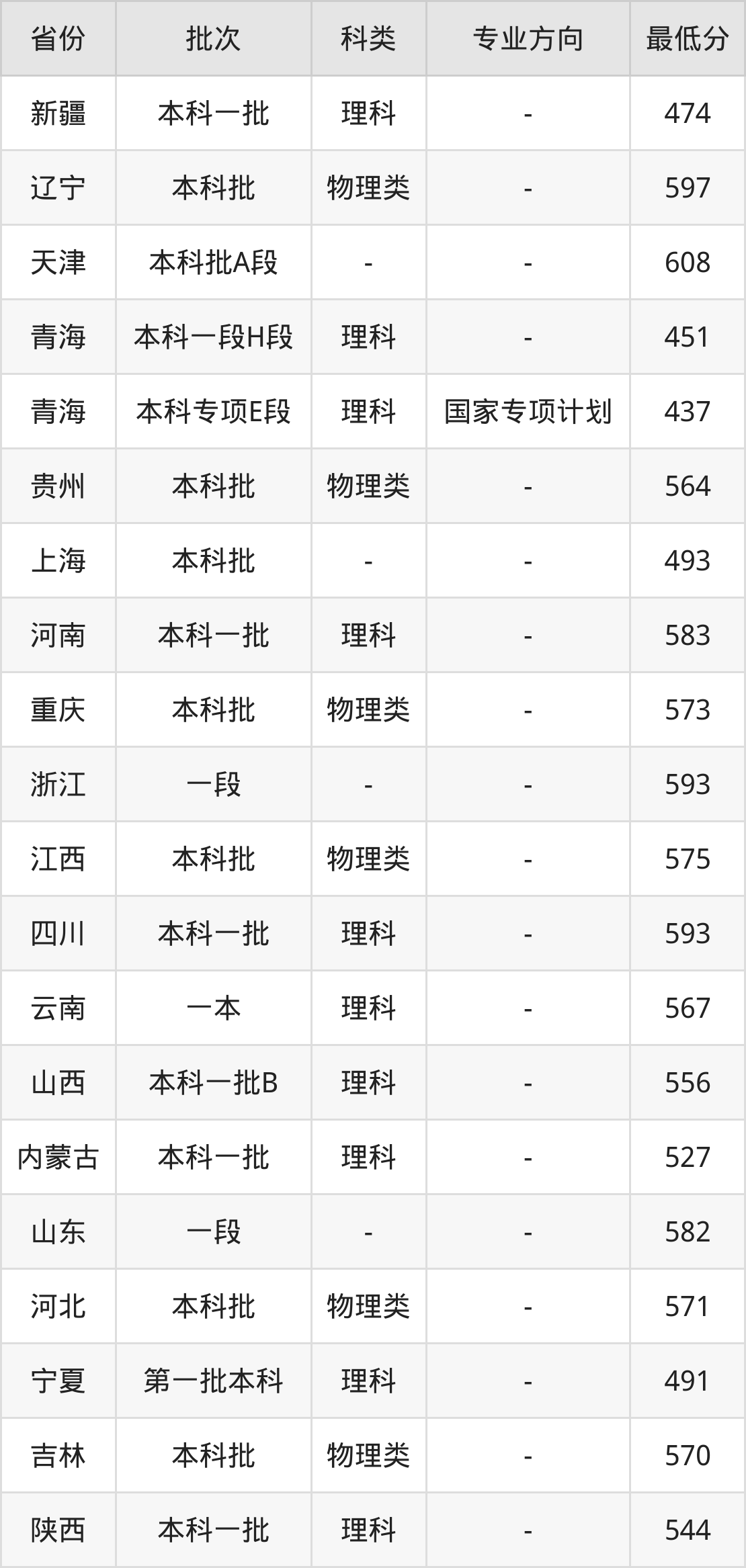 | 批次 | 最低分 | 位次 |