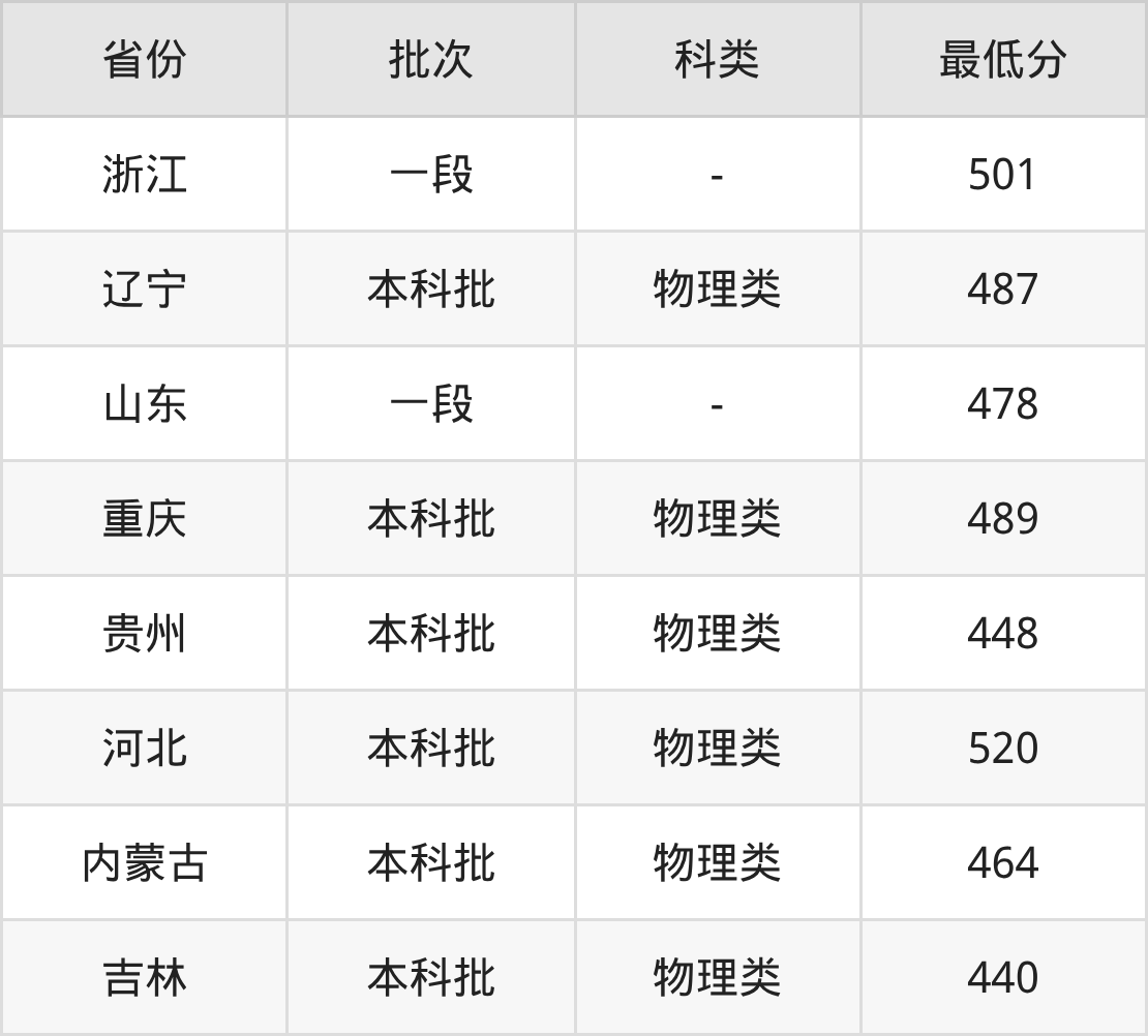 | 批次 | 科类 | 最低分 | 位次 |