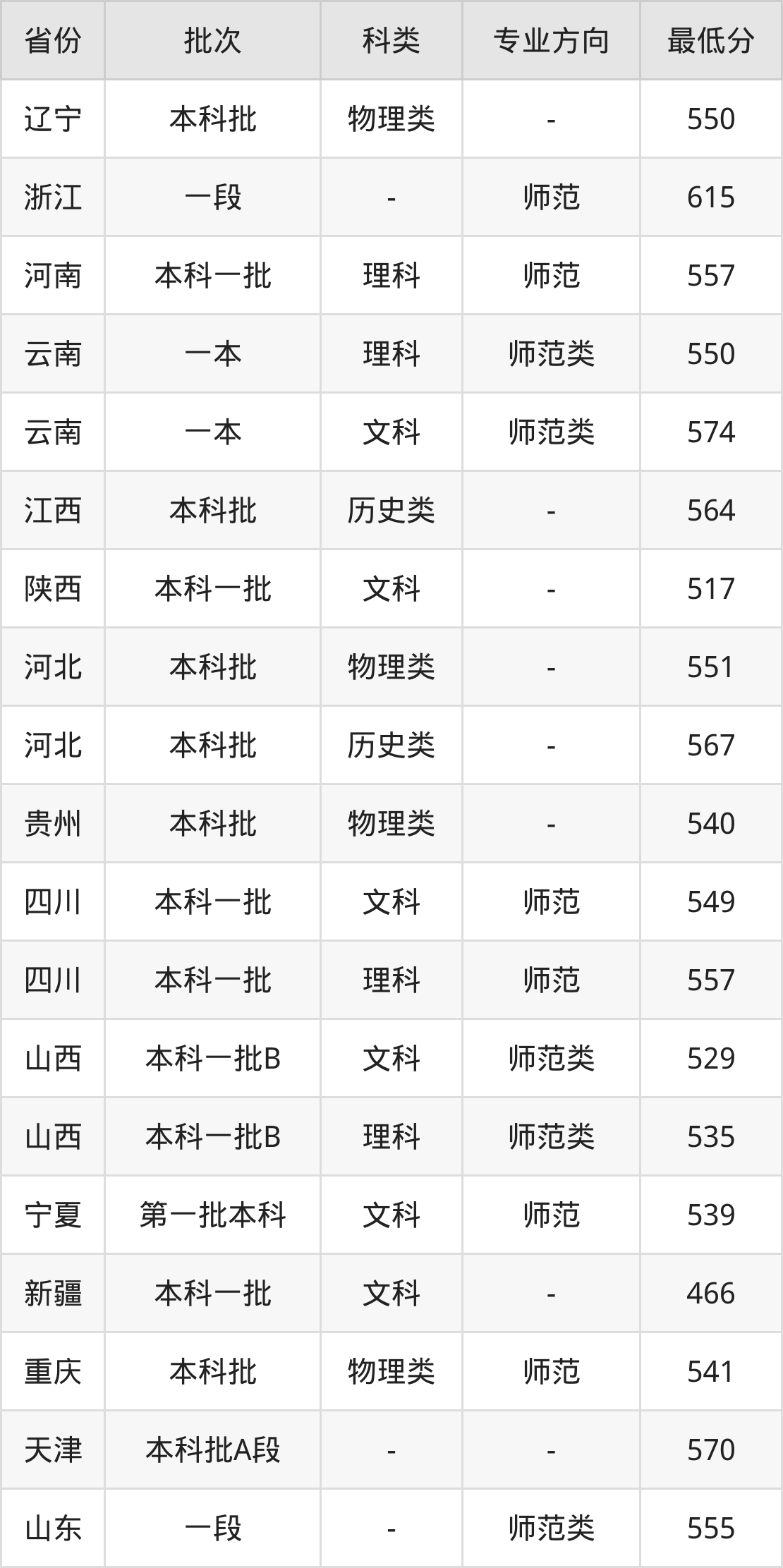 文科549分(师范、位次11166名),理科557分(师范、位次62994名);