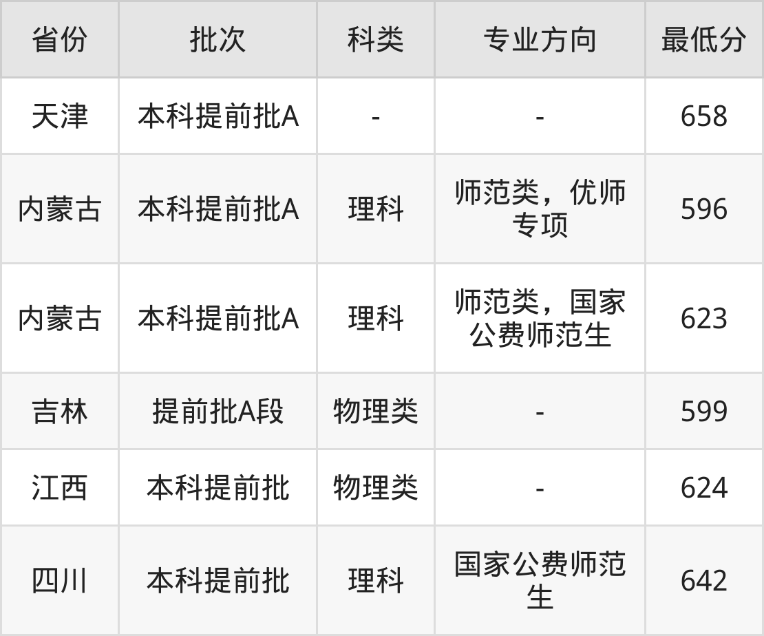 理科596分(师范类,优师专项、位次4639名),理科623分(师范类,国家公费师范生、位次2220名);