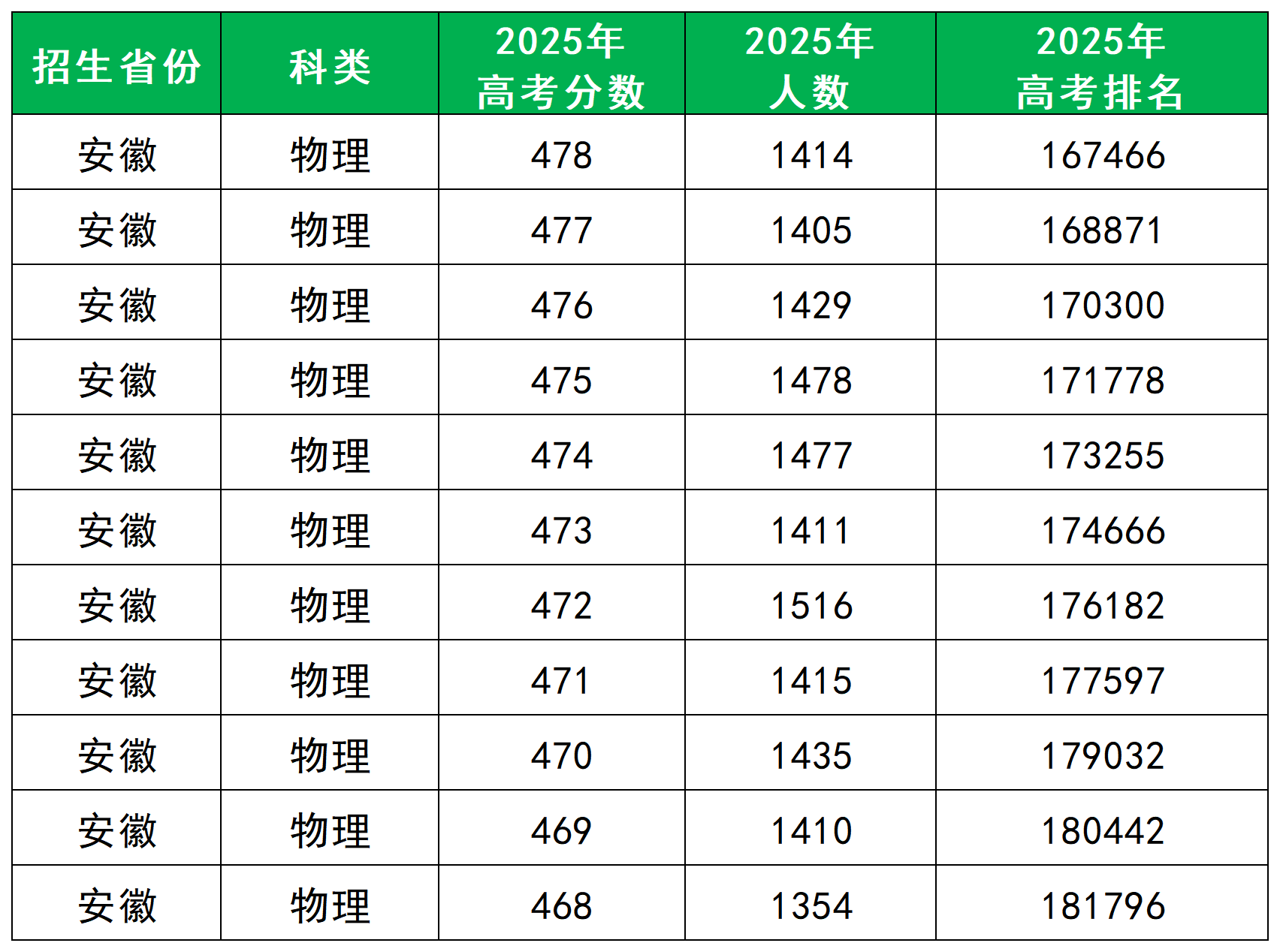 通过上述方法获得省排名后,可参考2025年安徽高考位次对应大学表,初步筛选目标院校。以下为全国本科大学在安徽的最低录取位次(历史类前1万名,物理类前4万名,不含中外合作等单列专业组),供同学们参考。