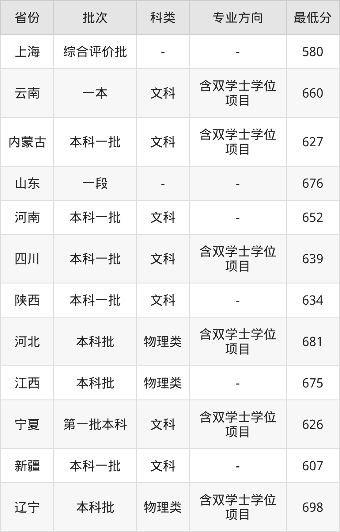 文科660分(含双学士学位项目、位次93名);