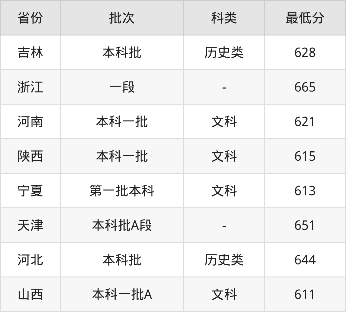 南开大学历史学类专业录取分数线2024各省汇总显示,市内招生最低分为651分,市外招生最低分为陕西615分、宁夏613分、河北644分、山西611分等。更多专业分数详情、选科要求、专业简介等均可在正文查阅。