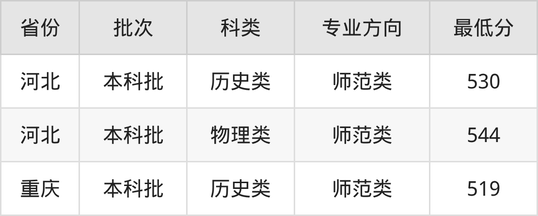 | 本科批 | 物理类 | 师范类 | 544 | 89552 |