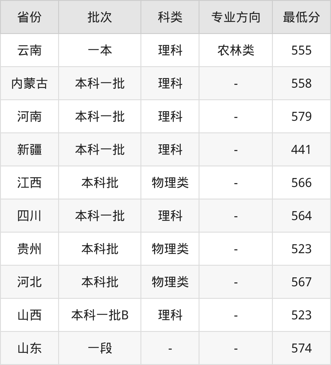 2024年扬州大学动物科学专业在省外招生分数线各不相同,具体如下: