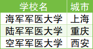 下面是全国3所军医大学名单最新完整版: