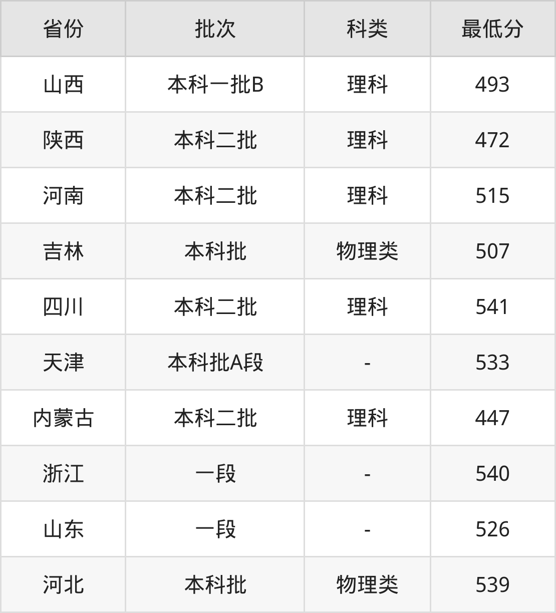 太原科技大学工程力学专业录取分数线2024各省汇总显示,省内招生最低分为493分,省外招生最低分为四川541分、陕西472分、天津533分、吉林507分等。更多专业分数详情、选科要求、专业简介等均可在正文查阅。