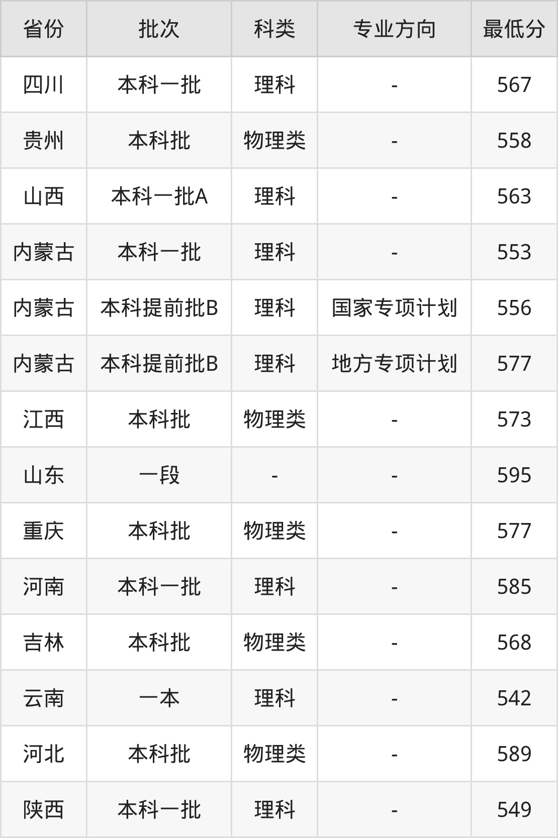 | 批次 | 科类 | 专业方向 | 最低分 | 位次 |