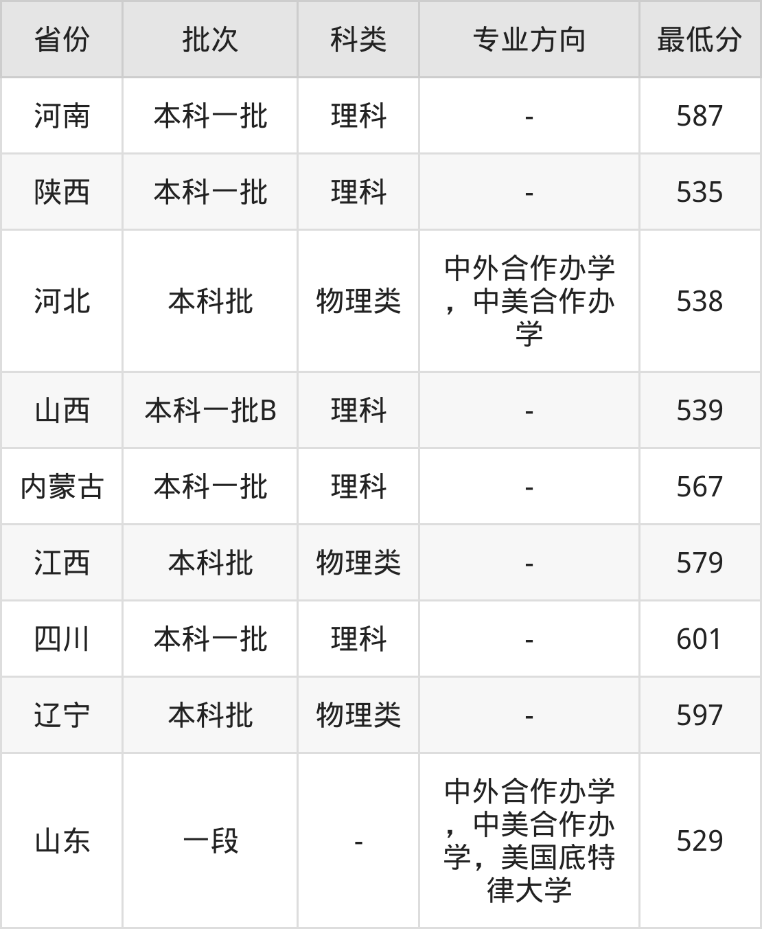 物理类538分(中外合作办学,中美合作办学、位次69761名);