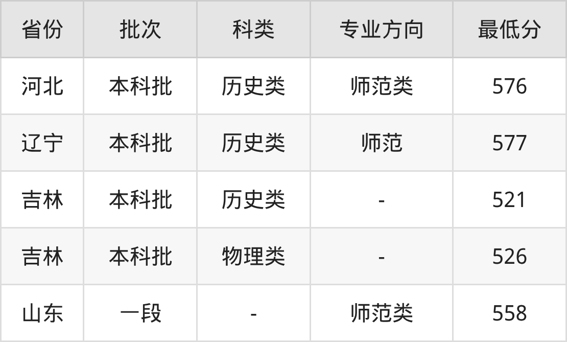 2025年吉林师范大学英语专业在省外招生分数线各不相同,具体如下:
