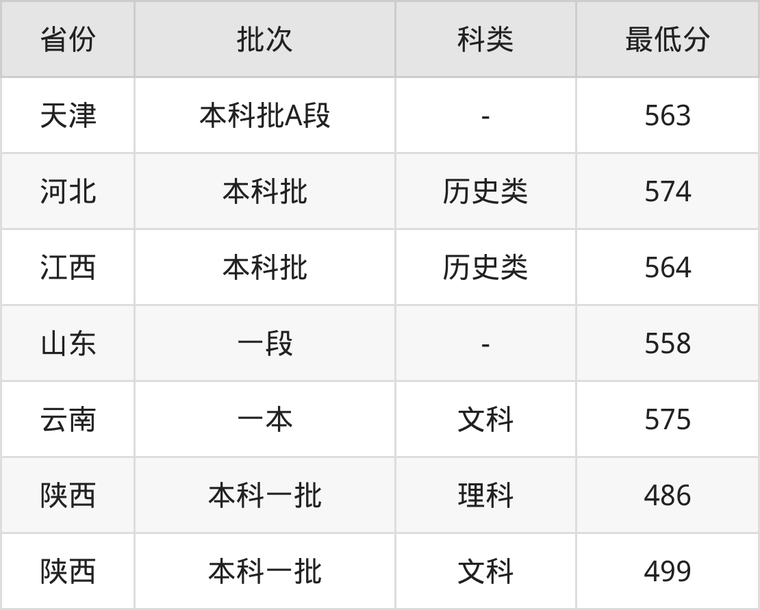 | 批次 | 科类 | 最低分 | 位次 |