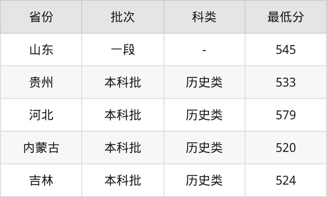 黑龙江科技大学汉语言文学专业录取分数线2025各省汇总显示,省外招生最低分为山东545分、贵州533分、河北579分、内蒙古520分等。更多专业分数详情、选科要求、专业简介等均可在正文查阅。