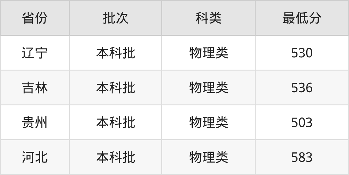 | 批次 | 科类 | 最低分 | 位次 |