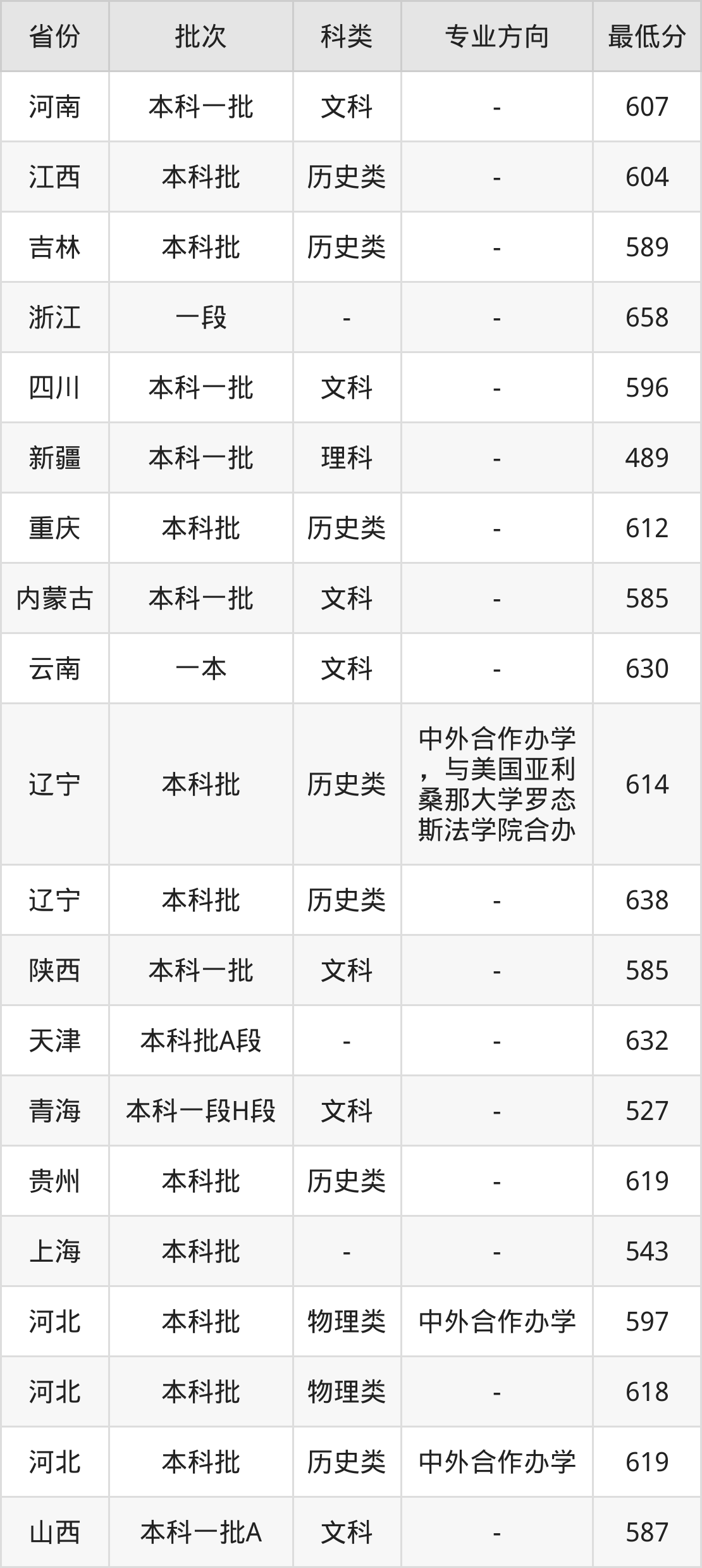 物理类597分(中外合作办学、位次17561名),物理类618分(位次8071名),历史类619分(中外合作办学、位次1999名);