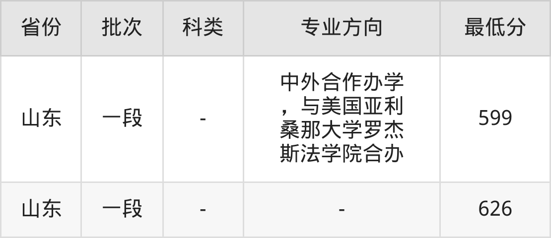 | 一段 | 中外合作办学 ,与美国亚利 桑那大学罗杰 斯法学院合办 | 599 | 22811 |