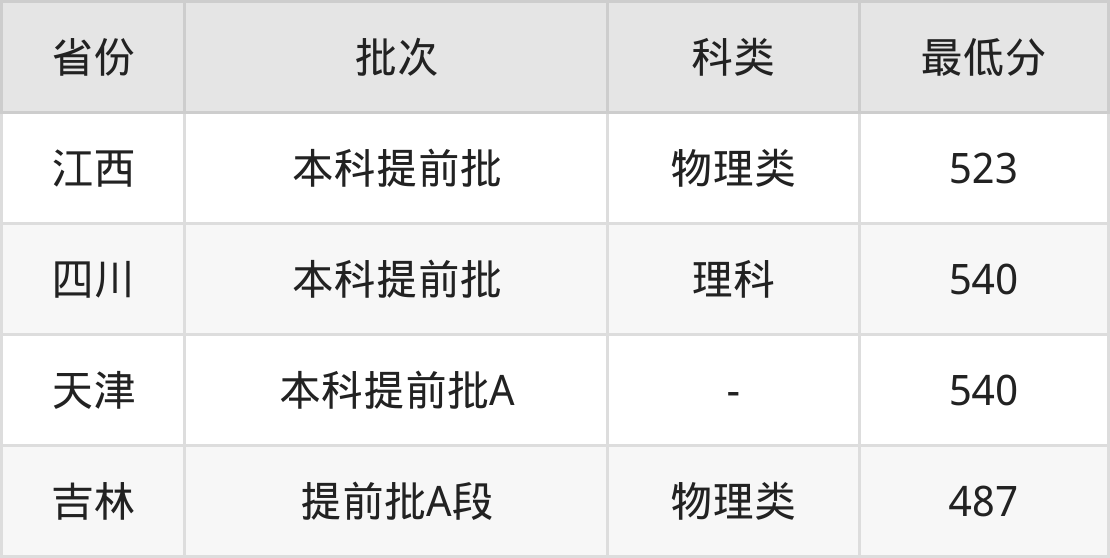 4、吉林省(提前批A段)