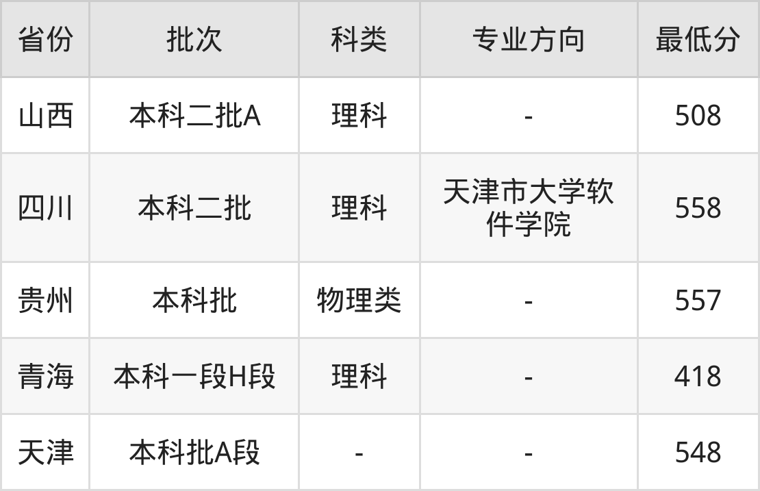 2024年天津理工大学软件工程专业在市外招生分数线各不相同,具体如下: