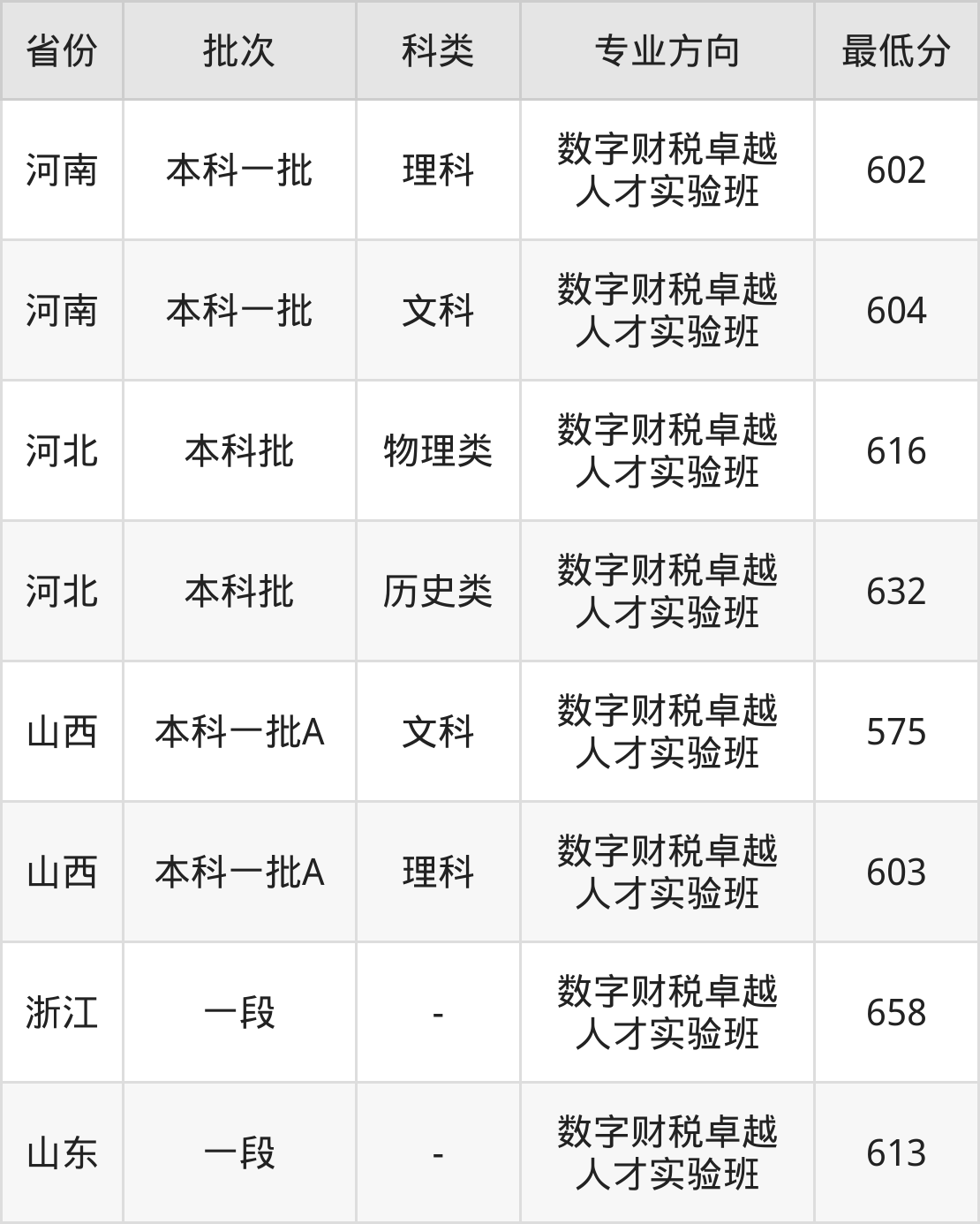 658分(数字财税卓越人才实验班、位次9055名);