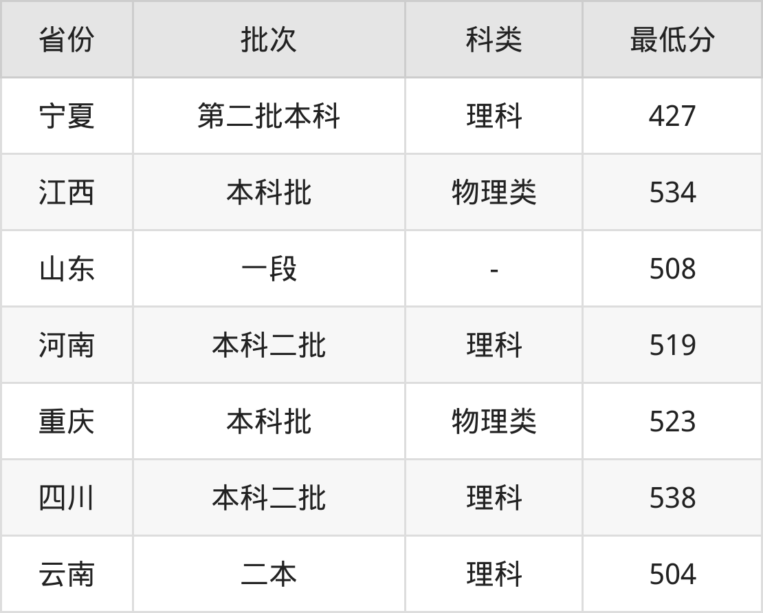 | 批次 | 科类 | 最低分 | 位次 |