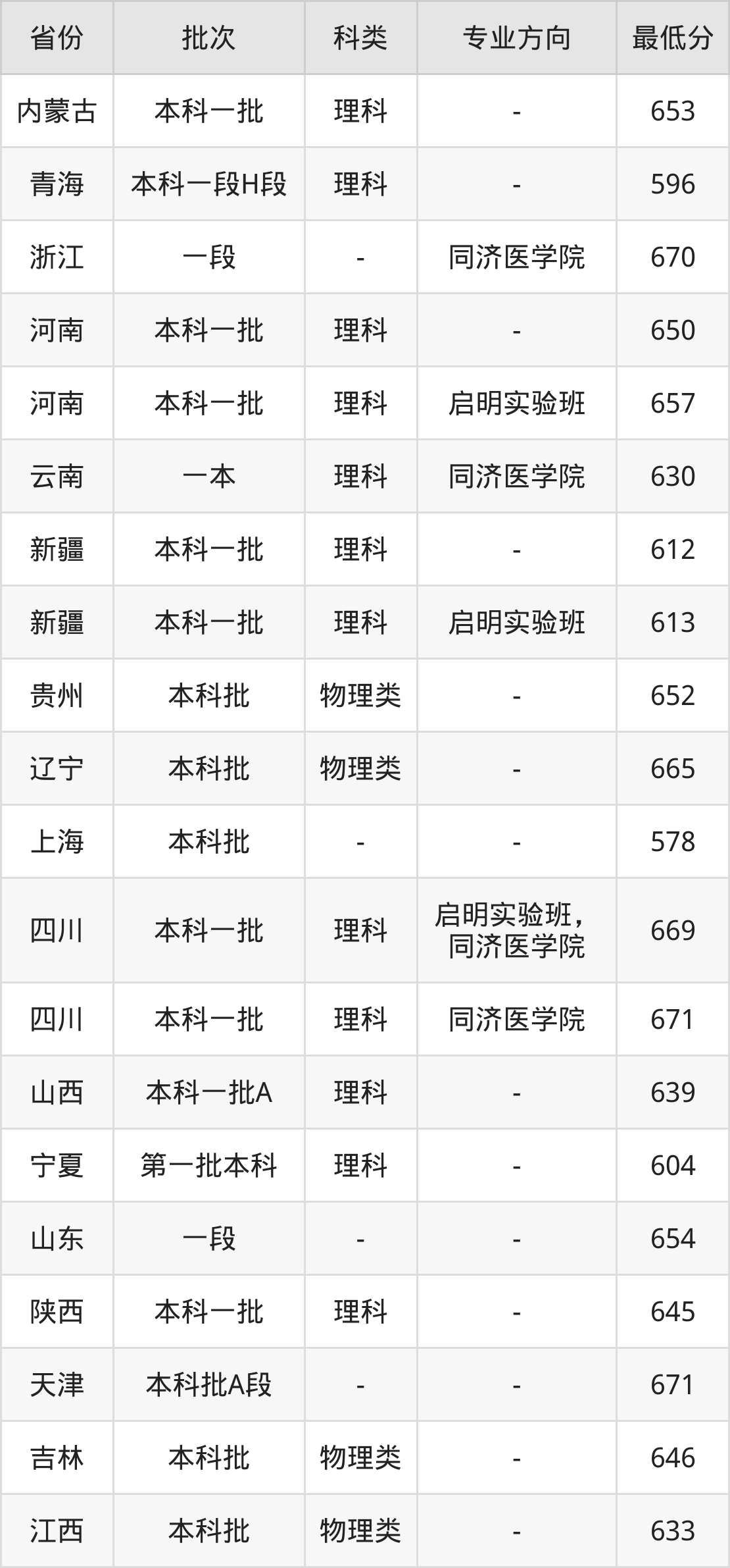 理科669分(启明实验班,同济医学院、位次1563名),理科671分(同济医学院、位次1335名)。
