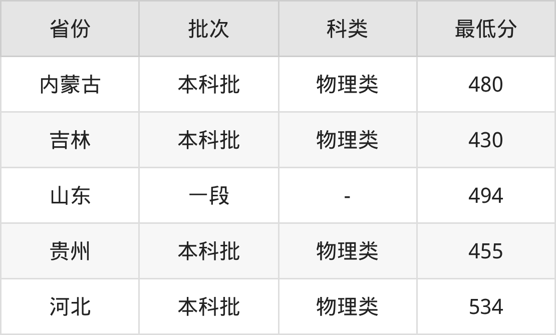 | 批次 | 科类 | 最低分 | 位次 |