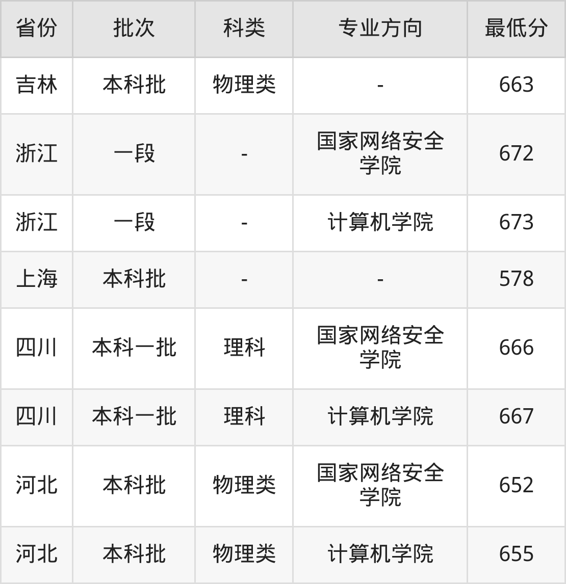 理科657分(国家网络安全学院、位次580名),理科658分(计算机学院、位次535名);