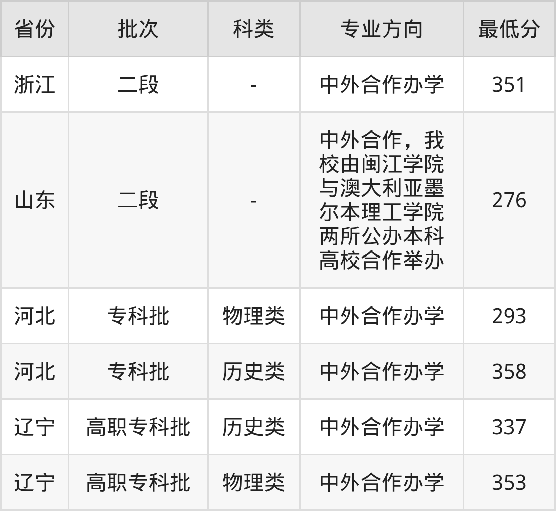 276分(中外合作,我校由闽江学院与澳大利亚墨尔本理工学院两所公办本科高校合作举办、位次625932名);