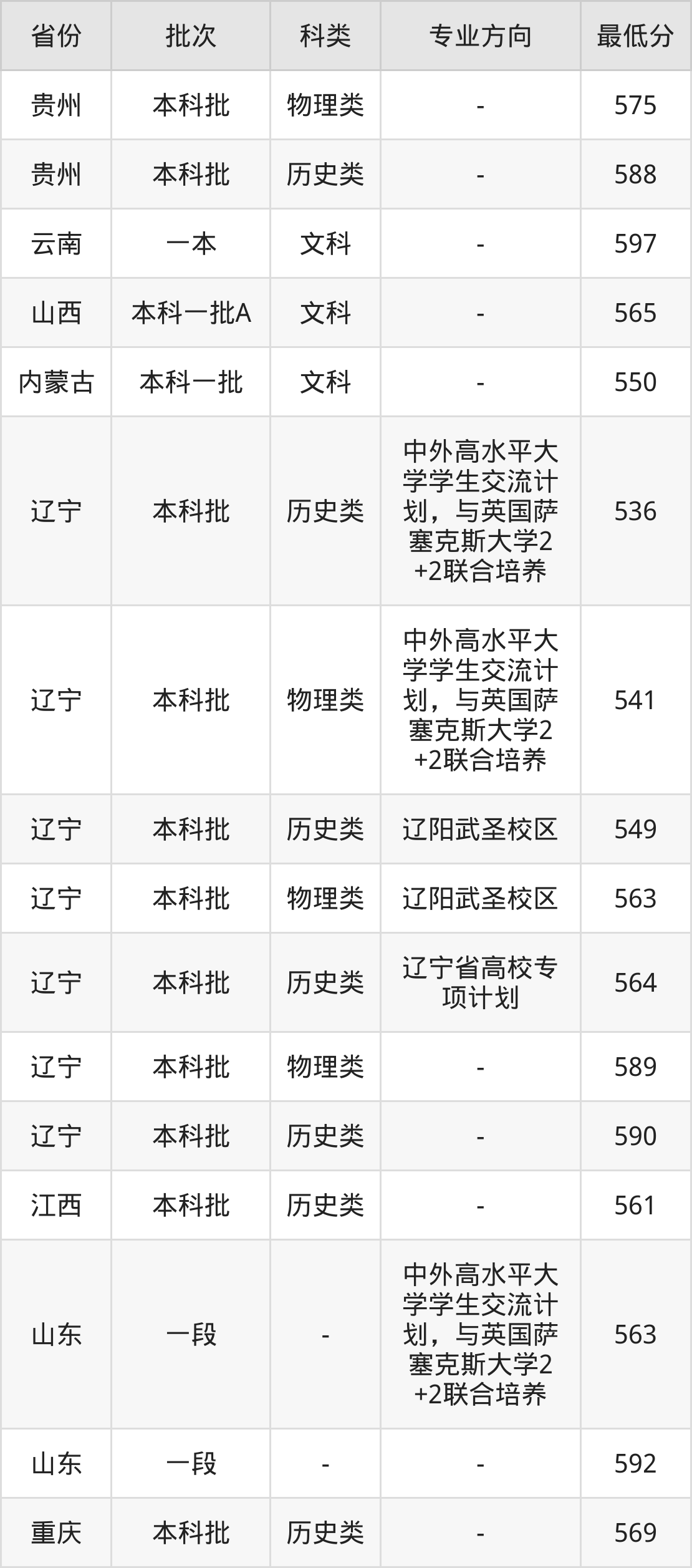 | 本科批 | 历史类 | 中外高水平大 学学生交流计 划,与英国萨 塞克斯大学2 +2联合培养 | 536 | 7608 |