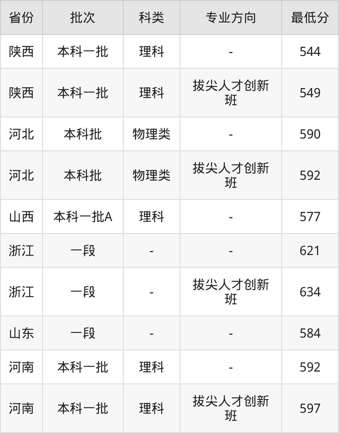 | 批次 | 专业方向 | 最低分 | 位次 |